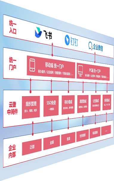 对协作平台提供支持服务,,,,支持企业应用与协作平台对接,,,,包含组织同步、、、、消息集成、、、、待办集成等。。。支持目前主流的协作平台:钉钉、、企微和飞书。。