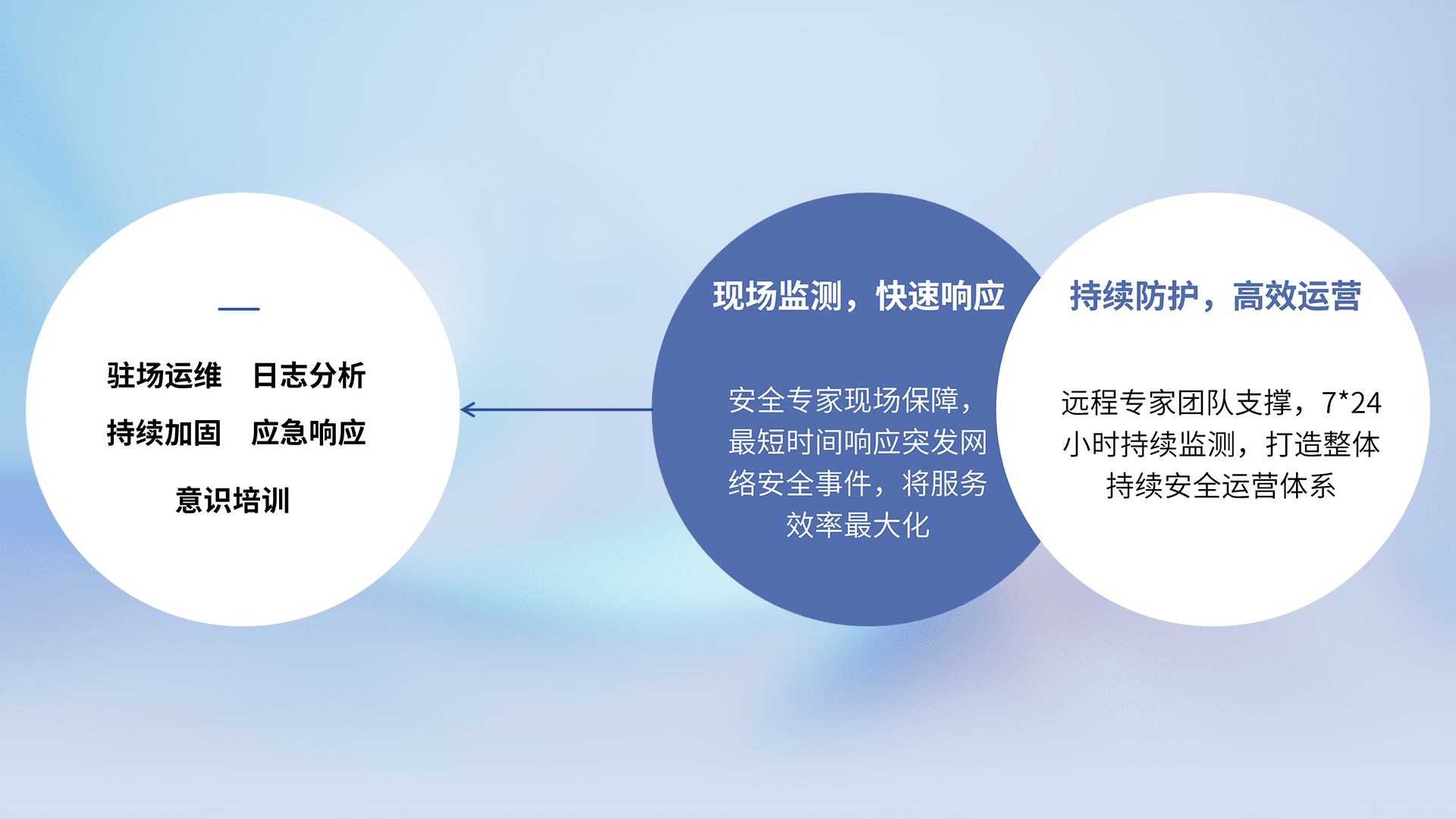 针对客户行业特性,,,,以专业的安全服务+多厂商联合解决方案提供专属的一站式安全管理服务,,帮助客户全面感知网络空间威胁,,,,基于识别、、、检测、、分析、、、防护、、、监测、、响应的服务理论模型,,,,从方案咨询、、集成交付、、、评估验证、、、、优化加固、、运维运营,,,致力于为客户提供完整的闭环管理式安全服务。。。。以实战经验为客户打造高抵御风险的安全体系,,,,帮助客户发现威胁、、、对抗威胁、、处置威胁,,,不断积累安全对抗能力,,持续保障数字化安全。。